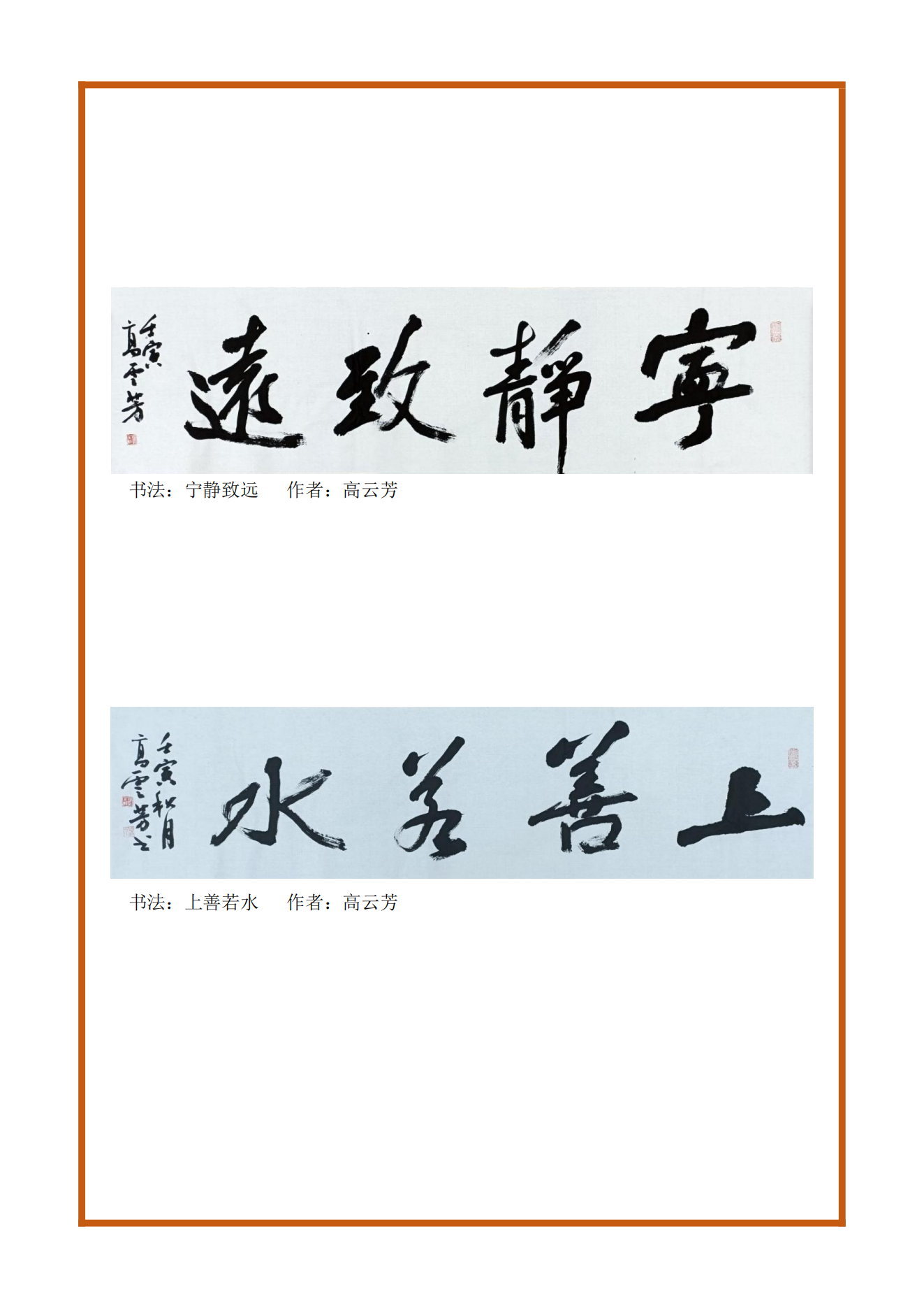 书法:宁静致远、上善若水
